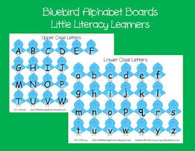 I finally realized that I have had my Bunny Alphabet Board (which is included in my Bunnies and Chicks Early Literacy Pack) hanging up for my Kinderkids for entirely too long now. So I sat down and created a new Bluebird Alphabet Board and am sharing this FREEBIE with you.